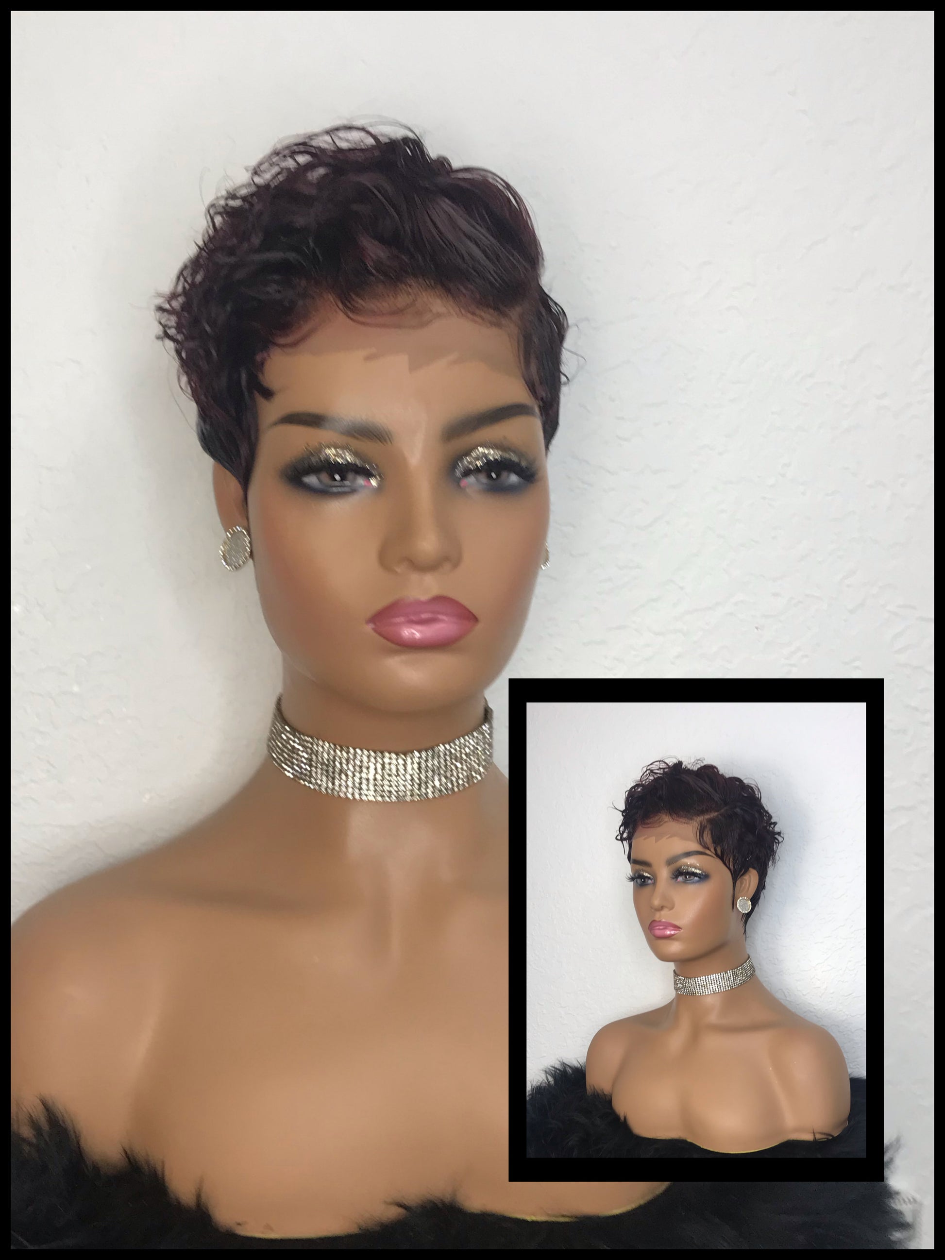 5*5 lace closure short cut wig dark red