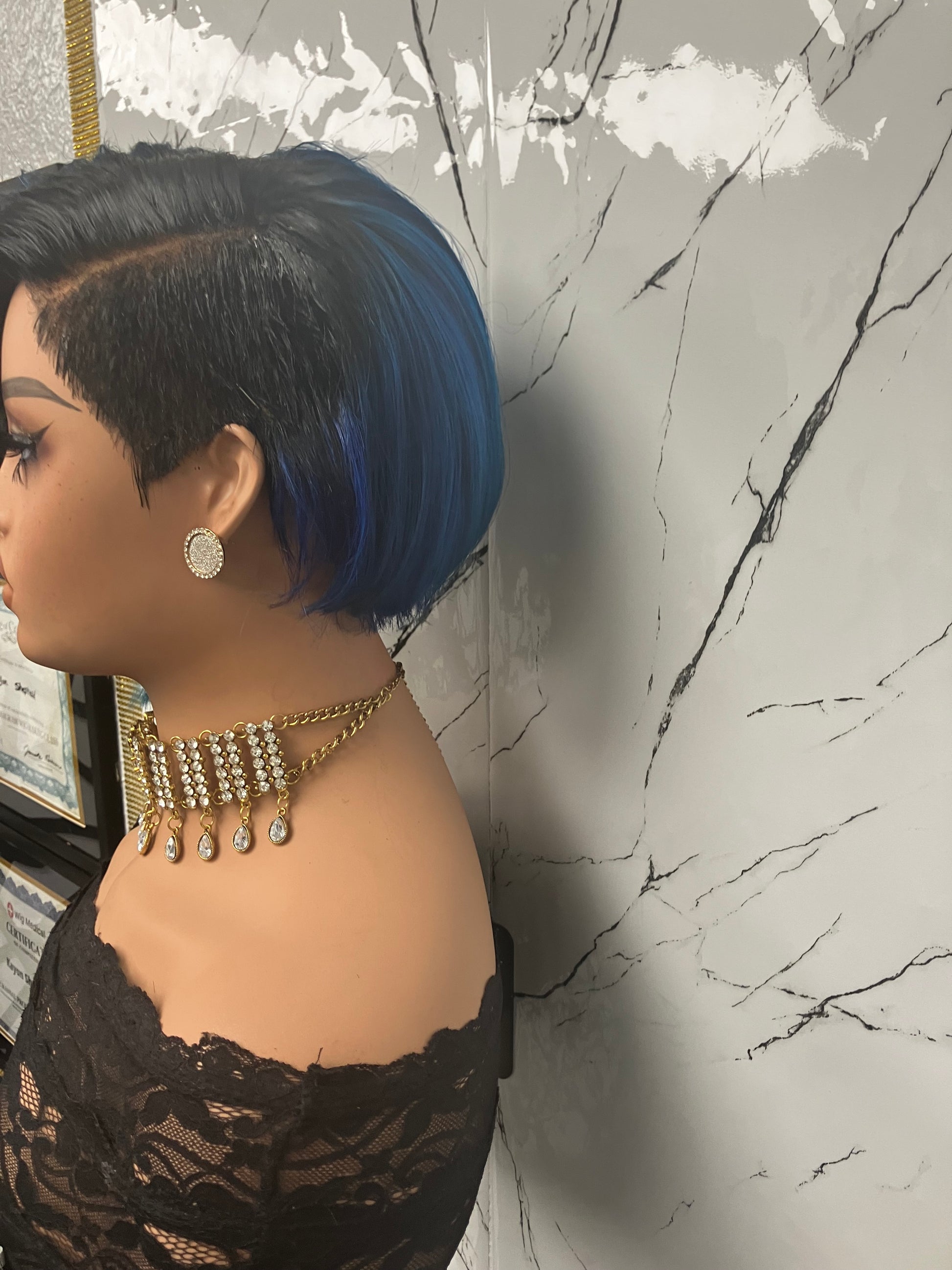 Fun color wig with shave
